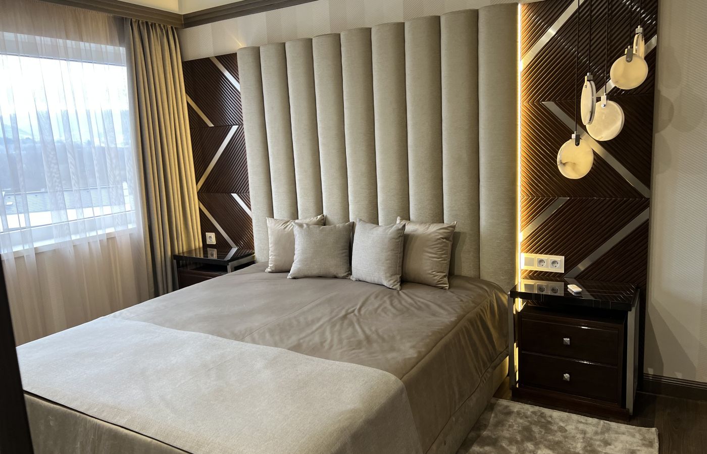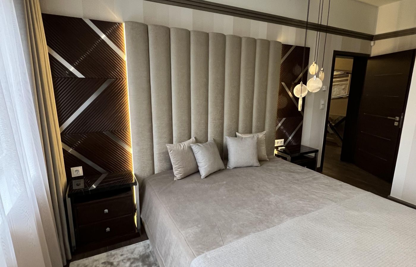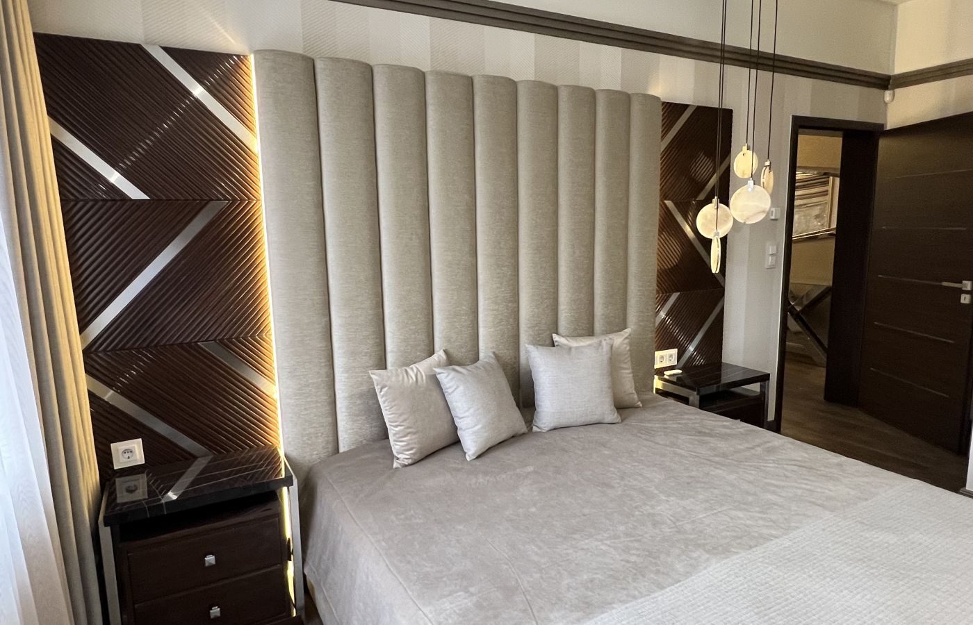 A Velluto Lux ágy a modern luxus és az építészeti precizitás találkozása. Az ágy karakterét a függőleges tagolású, extra magas, párnázott fejvég adja, amely nemcsak vizuálisan domináns elem, hanem térformáló szerepet is betölt a hálószobában. A teljes ágykeret prémium minőségű, kárpitozott felületekkel készül, letisztult arányokkal és hangsúlyos, mégis elegáns tömeggel. A fejvég kialakítása ideális falpaneles vagy egyedi belsőépítészeti megoldásokhoz, akár teljes falmagasságban is alkalmazható. A Velluto Lux ágy minden részlete testreszabható: a kárpit anyaga, színe és textúrája szabadon választható, így az ágy tökéletesen illeszthető modern, minimalista vagy kifejezetten luxus enteriőrökbe is. Az ágy nemcsak bútor, hanem hangsúlyos design-elem, amely meghatározza a tér hangulatát. Ez az ágy azoknak készült, akik nem kompromisszumot keresnek, hanem egyértelmű minőségi állítást szeretnének tenni a hálószobában.