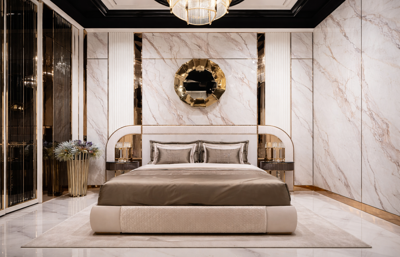 A Velovis ágy és éjjeliszekrény együttese a kifinomult luxus és a részletgazdag anyaghasználat megtestesítője. A kollekció karakterét a lágyan ívelt formák, a strukturált felületek és a nemes anyagok harmonikus egysége határozza meg. Az ágy hangsúlyos, ívelt fejvége vizuális keretet ad a hálótérnek, miközben a finoman texturált felületek és a precízen kidolgozott részletek elegáns, nyugodt atmoszférát teremtenek. A kárpitozott elemek és a fém betétek kiegyensúlyozott aránya kortárs, mégis időtálló megjelenést biztosít. A Velovis éjjeliszekrény formavilágában és anyaghasználatában szervesen kapcsolódik az ágyhoz. A bordázott front, a márványhatású felső felület és a fényes részletek finom kontrasztot alkotnak, miközben praktikus kiegészítőként szolgálják a mindennapi használatot. A Velovis kollekció olyan enteriőrökbe készült, ahol a hálószoba nem csupán funkcionális tér, hanem a pihenés, az elegancia és az esztétikai összhang kiemelt színtere. Az ágy és az éjjeliszekrény együttesen egy egységes, karakteres hálószobai kompozíciót hoz létre.