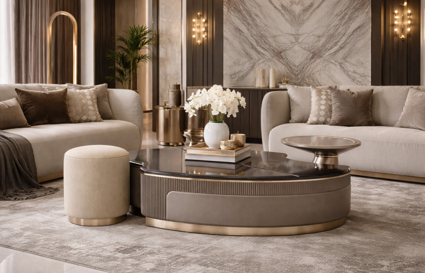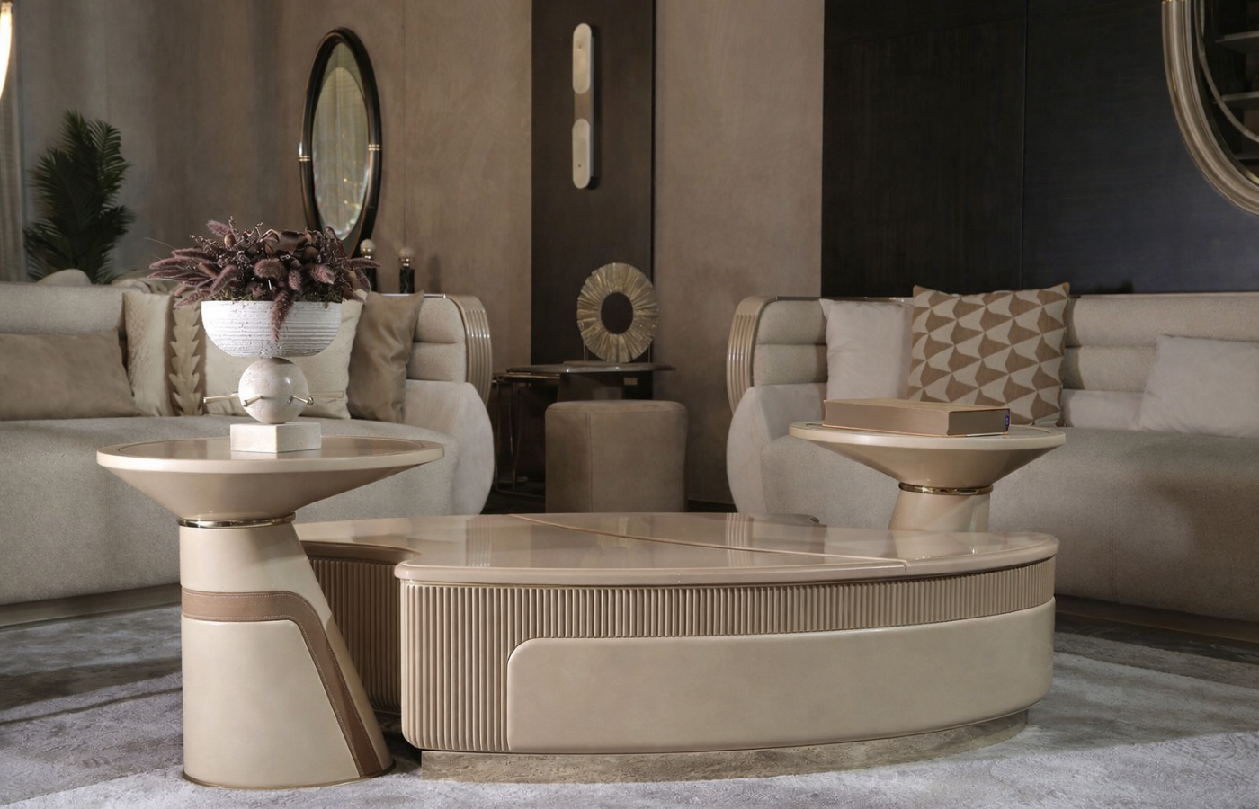 A Niks dohányzóasztal egy karakteres, kortárs dizájnt képviselő prémium bútordarab, amely organikus formavilágával és kifinomult anyaghasználatával azonnal fókuszponttá válik a térben. A több szintből és eltérő magasságú elemekből álló kialakítás nemcsak vizuálisan dinamikus, hanem funkcionálisan is rugalmas megoldást kínál. A fényes, sötét felület elegáns kontrasztot alkot a finoman strukturált oldalfallal és a fémes részletekkel. A kiegészítő oldalelemek és a választható puff tovább növeli a kompozíció használhatóságát, miközben megőrzi a bútor exkluzív megjelenését. A Niks dohányzóasztal ideális választás luxus nappalikba, modern enteriőrökbe és reprezentatív terekbe, ahol az egyedi forma és a magas minőség alapelvárás. A termék elemei külön is megvásárolhatóak.