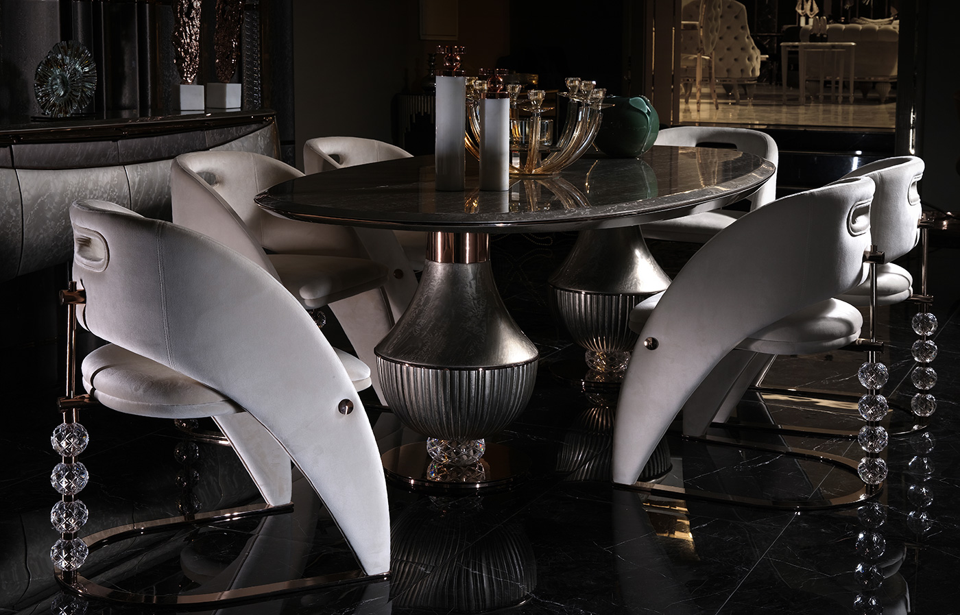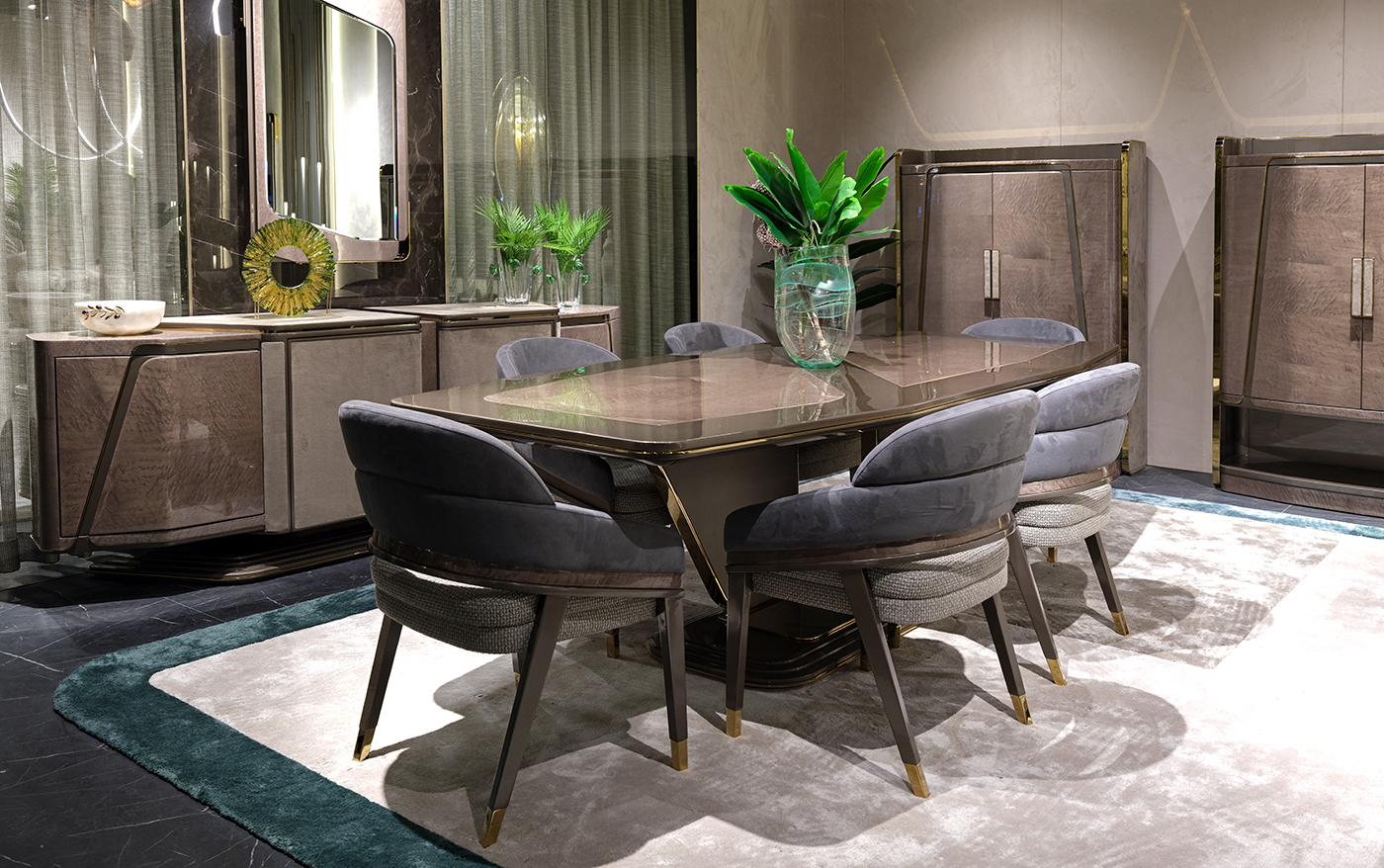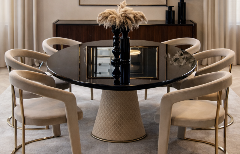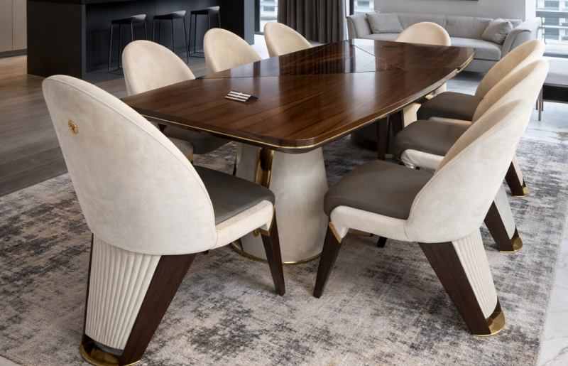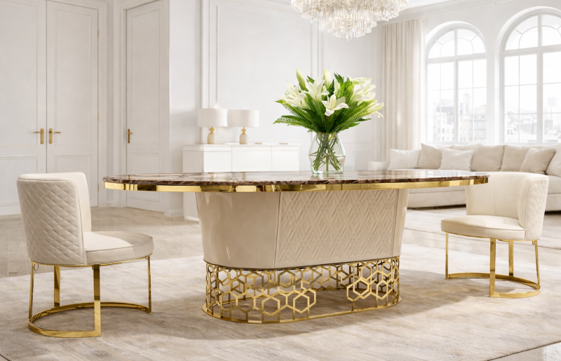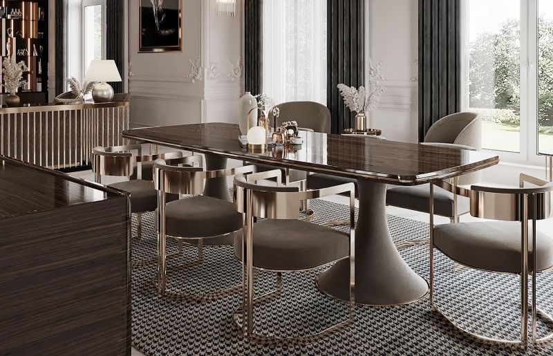 Étkezőasztal kollekcióink minden elvárást kielégítő harmóniával töltik meg a teret, minden napot ünnepnappá varázsolnak. Standard termékkollekciónk között art deco és glamour stílusú bútorok közül válogathatsz de letisztultabb darabokat is találhatsz. Termékeinket a kért méretre készítjük a megrendelő által kért színekben.