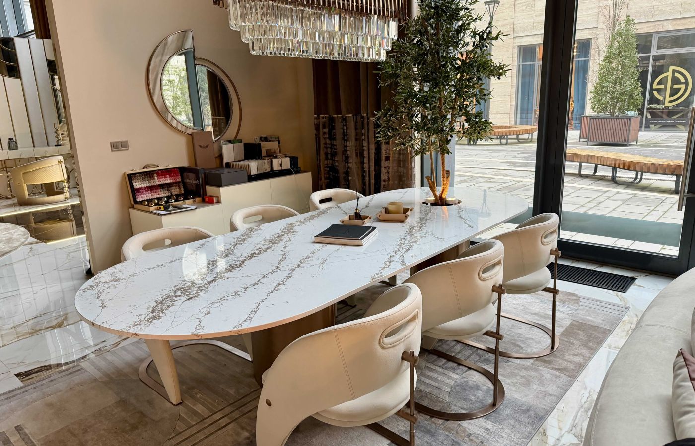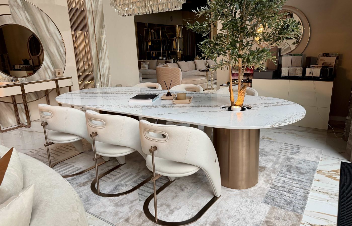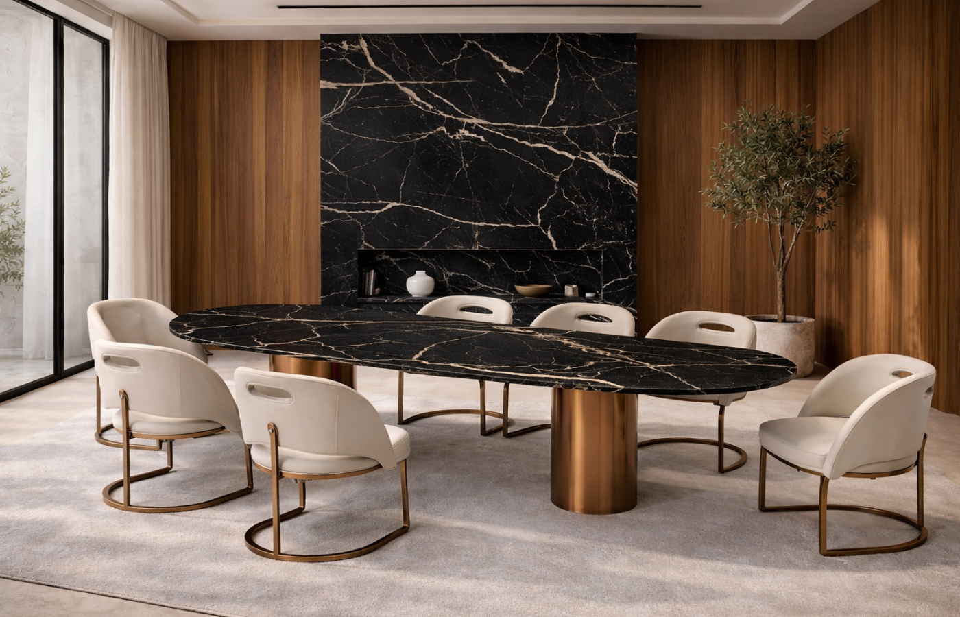 Statement darab nagyvonalú terekbe – exkluzív étkező, nappali-étkező tér, penthouse vagy showroom.