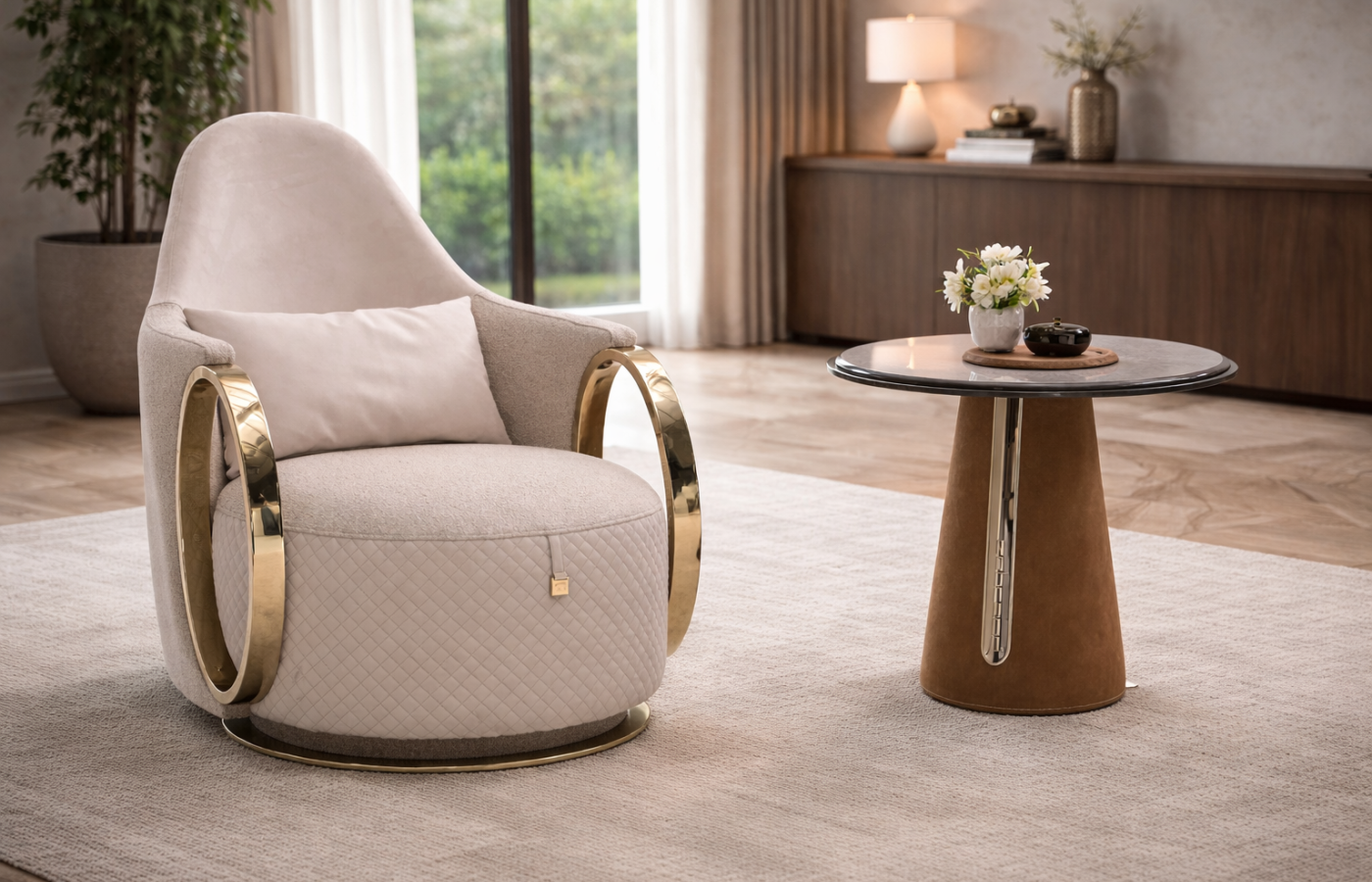 A Niks fotel egy kortárs luxus fotel, amely letisztult formavilágával és finoman hangsúlyozott részleteivel azonnal karaktert ad a térnek. Ívelt vonalai és kiegyensúlyozott arányai vizuális könnyedséget sugároznak, miközben magabiztos jelenlétével természetes fókuszponttá válik a modern enteriőrökben. A Niks ideális választás azok számára, akik luxus fotelt keresnek nappaliba, lounge-térbe vagy exkluzív fogadókörnyezetbe. Megjelenése egyszerre elegáns és kortárs, így kiválóan illeszkedik magas minőségű, design-orientált belső terekbe, ahol az esztétika és a komfort egyensúlya alapelv. Ez a fotel nem a klasszikus díszítettségre épít, hanem a modern luxus nyelvén szól: tiszta formák, harmonikus felületek és időtálló vizuális nyugalom. A Niks olyan enteriőrökben érzi igazán otthon magát, ahol a részletek tudatosan vannak megkomponálva.